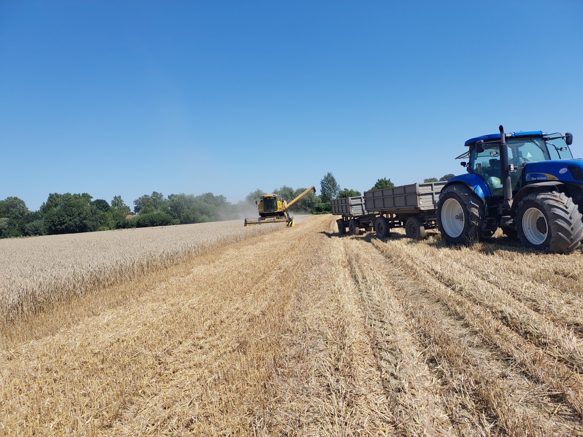 RZD Błonie-Topola. Tegoroczny sierpień przyniósł niewielką poprawę w pogodzie. Miesięczna suma opadów wyniosła 65 mm co złagodziło skutki panującej suszy. Sierpień był miesiącem wyjątkowo upalnym, maksymalna zanotowana temperatura wyniosła 35,2°C. W sierpniu udało się zakończyć rozpoczęte w lipcu żniwa. Pszenica ozima plonowała na poziomie 7,0 t/ha natomiast pszenica jara 4,5 t/ha. Uprawy zbóż jarych były w bieżącym roku szczególnie narażone na deficyt opadów. O ile zboża ozime wykorzystały wiosenną, wilgotną aurę, to już zboża jare nie miały tak dobrych warunków. Po skończonych żniwach na polach przeprowadzono zabieg wapnowania oraz rozpoczęto siew roślin poplonowych. Na polach zlecono również przeprowadzenie badania gleby. Wegetacja buraka cukrowego oraz kukurydzy przebiega prawidłowo chociaż z pewnością i na tych uprawach widoczne będą ujemne skutki braku opadów. Pierwsze szacunki dotyczące plonowania buraka cukrowego wskazują na nawet 20 % spadek plonowania w stosunku do roku ubiegłego.