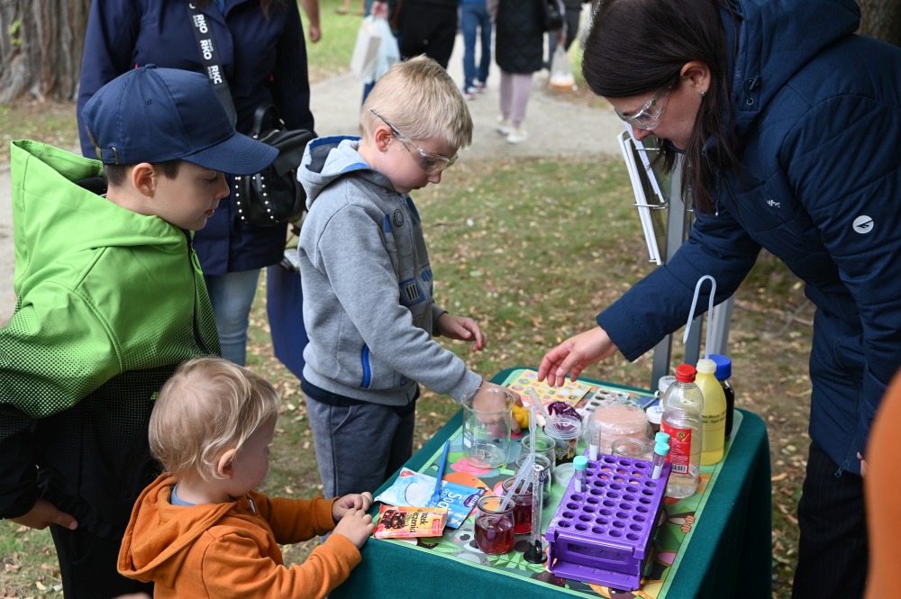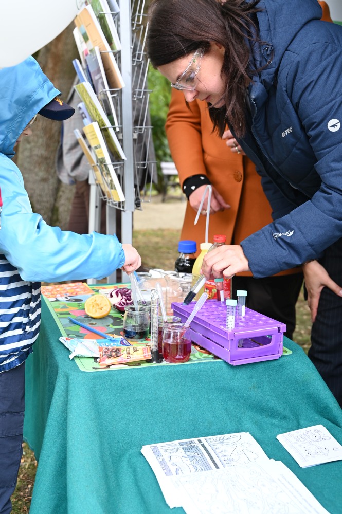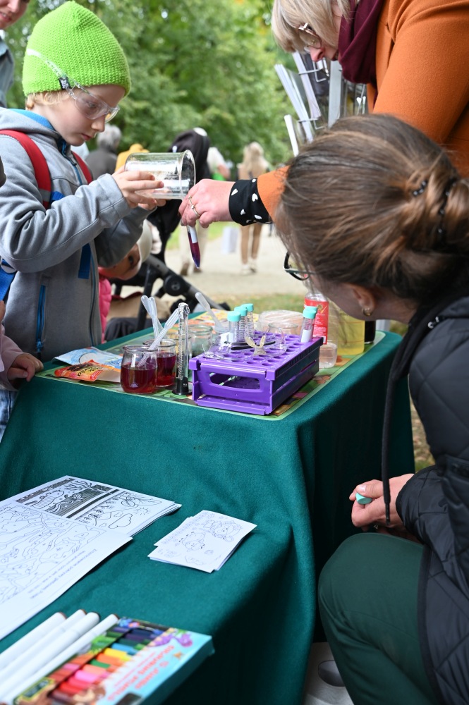 • Pokazy naukowe „Kolorowa chemia” – doświadczenia prowadzone przez dr Aleksandrę Bilbow z Zakładu Fitochemii, podczas których każdy mógł przeprowadzić eksperymenty ze zmianą barwy wskaźnika z czerwonej kapusty w zależności od pH,