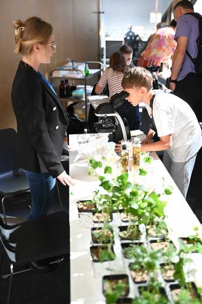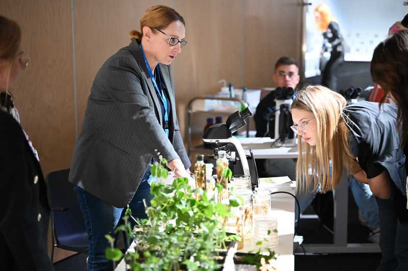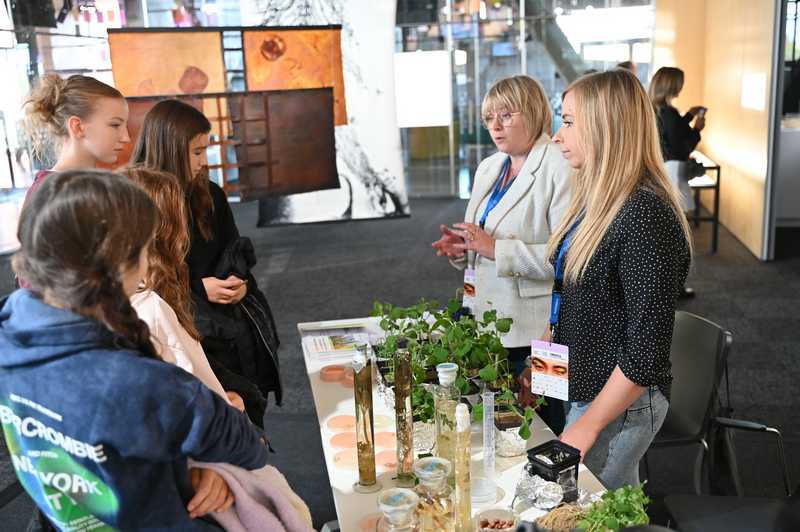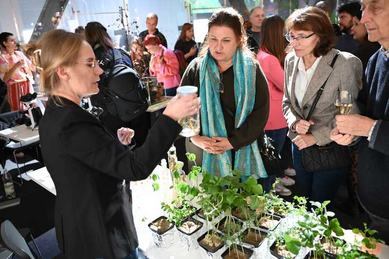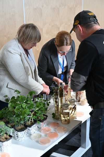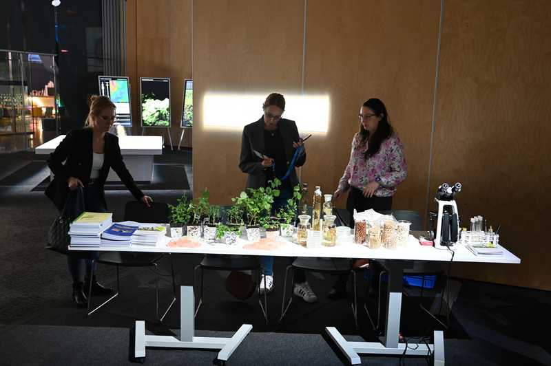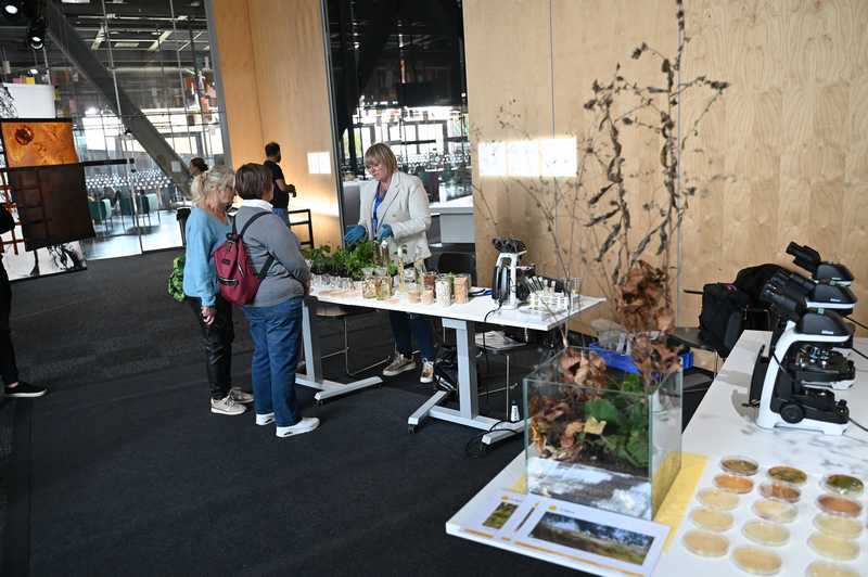 W dniach 3-5 października 2025 r. pracownicy Zakładu Mikrobiologii uczestniczyli w Festiwalu Przemian w Centrum Naukowym Kopernik. Zespół naukowy pod kierownictwem prof. dr hab. Anny Gałązki przygotował dla zwiedzających stoisko doświadczalne dotyczące symbiozy roślin bobowatych z bakteriami brodawkowymi. Tegoroczny Festiwal Przemiany odbył się pod hasłem przewodnim „Empatia: dla naiwnych czy odważnych?”, a wydarzenie skupiło się na tematyce empatii z perspektywy neuronauki, ekologii, sztucznej inteligencji i biologii ewolucyjnej. Wydarzenie było bezpłatne, a jego celem było sprostanie wyzwaniom przyszłości poprzez rozwijanie wrażliwości na potrzeby innych i ekosystemów. W programie znalazły się debaty, panele mistrzowskie i dyskusje poświęcone empatii z różnych dziedzin, takich jak neuronauka, ekologia, mikrobiologia, sztuczna inteligencja i biologia ewolucyjna, stacje doświadczalne i pokazy naukowe. Na stacjach doświadczalnych można było m.in. obserwować bakterie glebowe żyjące w symbiozie z roślinami, podsłuchiwać dźwięki wydawane przez rośliny i grzyby. Zespół profesor Anny Gałązki z IUNG-PIB miał możliwość przedstawienia m.in. obrazów mikroskopowych bakterii z rodzaju Rhizobium, posiewów bakteryjnych na selektywnych podłożach oraz obserwacji symbiozy roślin bobowatych z bakteriami. Prezentowana tematyka była ściśle związana z realizacja zadania 1.7 DC pt. „Preparaty mikrobiologiczne”. Z kolei zespół profesora Hazema Kalajiego z SGGW otworzy przychodnię dla roślin, w której można będzie zdiagnozować swoje domowe kwiaty za pomocą systemu umożliwiającego odczytywanie ich EKG – sygnałów biofizycznych wysyłanych przez rośliny w trakcie procesu fotosyntezy. Stacje doświadczalne cieszyły się bardzo dużym zainteresowaniem odwiedzających.