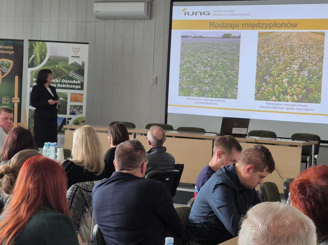 W dniu 28 października 2025 r. w Mazowieckim Ośrodku Doradztwa Rolniczego, oddział Poświętne odbyły się warsztaty pt. „Doskonalenie uprawy międzyplonów jako praktyki rolnictwa węglowego”. Warsztaty były współorganizowane przez Instytut Uprawy Nawożenia i Gleboznawstwa – Państwowy Instytut Badawczy w Puławach i Mazowiecki Ośrodek Doradztwa Rolniczego w Poświętnem. Spotkanie zorganizowano w ramach realizacji zadania 2.5 w Dotacji Celowej Ministerstwa Rolnictwa i Rozwoju Wsi.