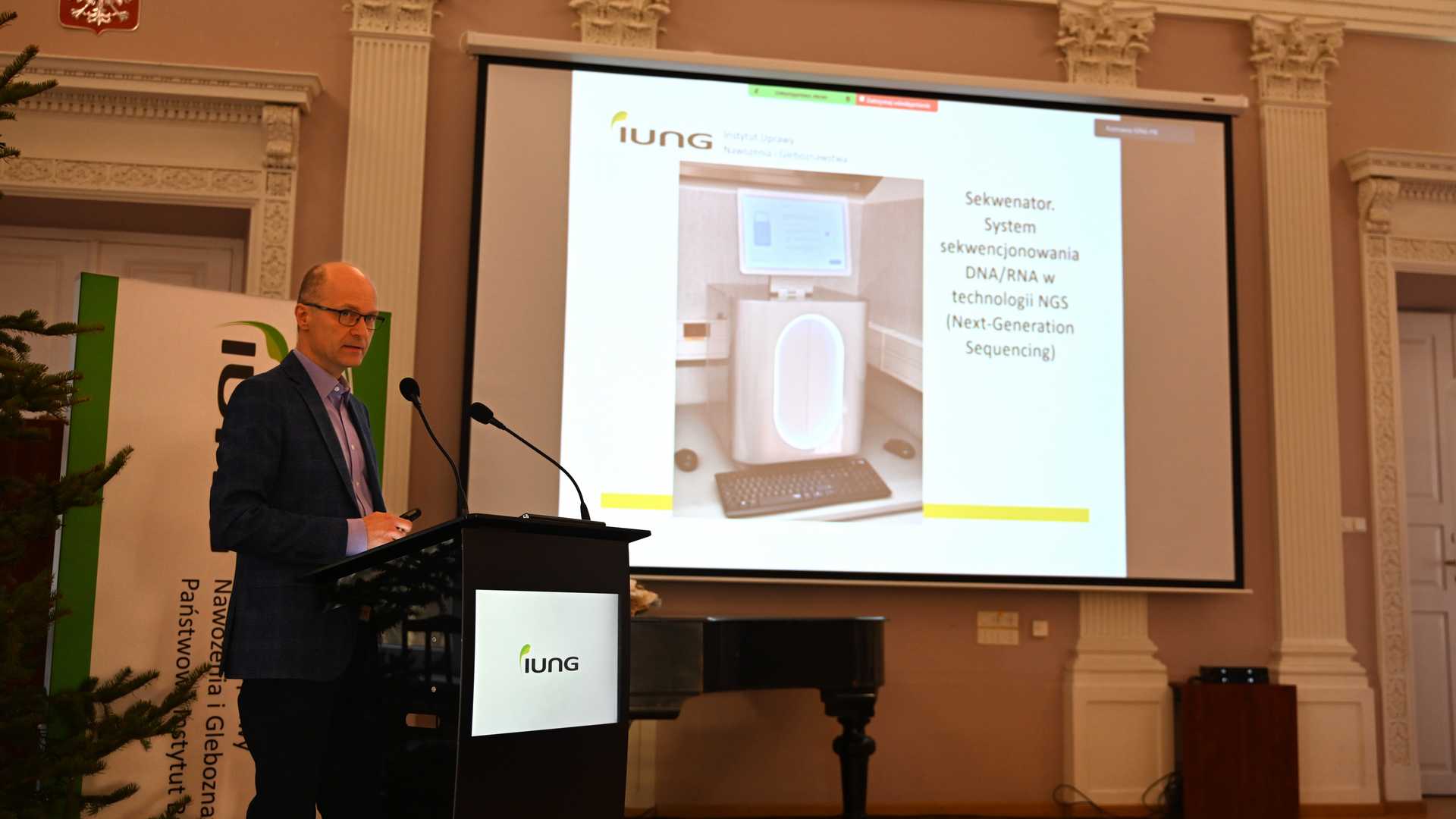 Dyrektor IUNG-PIB prof. dr hab. Mariusz Matyka przywitał zgromadzonych gości i przedstawicieli Ministerstwa Rolnictwa i Rozwoju Wsi. Następnie dr hab. Jarosław Stalenga zaprezentował ogólną charakterystykę dotacji celowej w 2025 roku.
