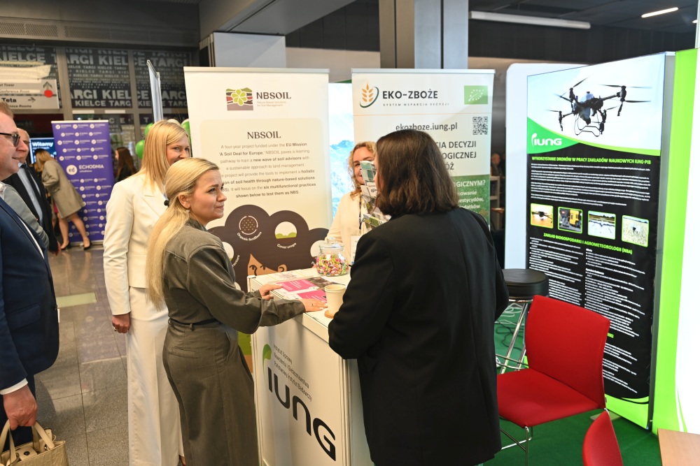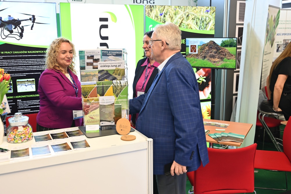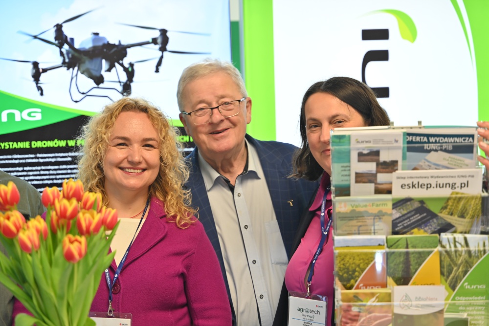 Nasze stoisko cieszyło się dużym zainteresowaniem nie tylko rolników i doradców, ale także przedstawicieli administracji rządowej. Gościem stoiska IUNG-PIB była Minister Dorota Gromadzka. Podczas wizyty poruszono kwestie kluczowych wyzwaniach stojących przed polskim rolnictwem, w tym o roli badań naukowych w procesie adaptacji gospodarstw do zmian klimatycznych oraz wdrażaniu nowoczesnych metod ochrony gleb i optymalizacji nawożenia takich jak bezzałogowe statki powietrzne.