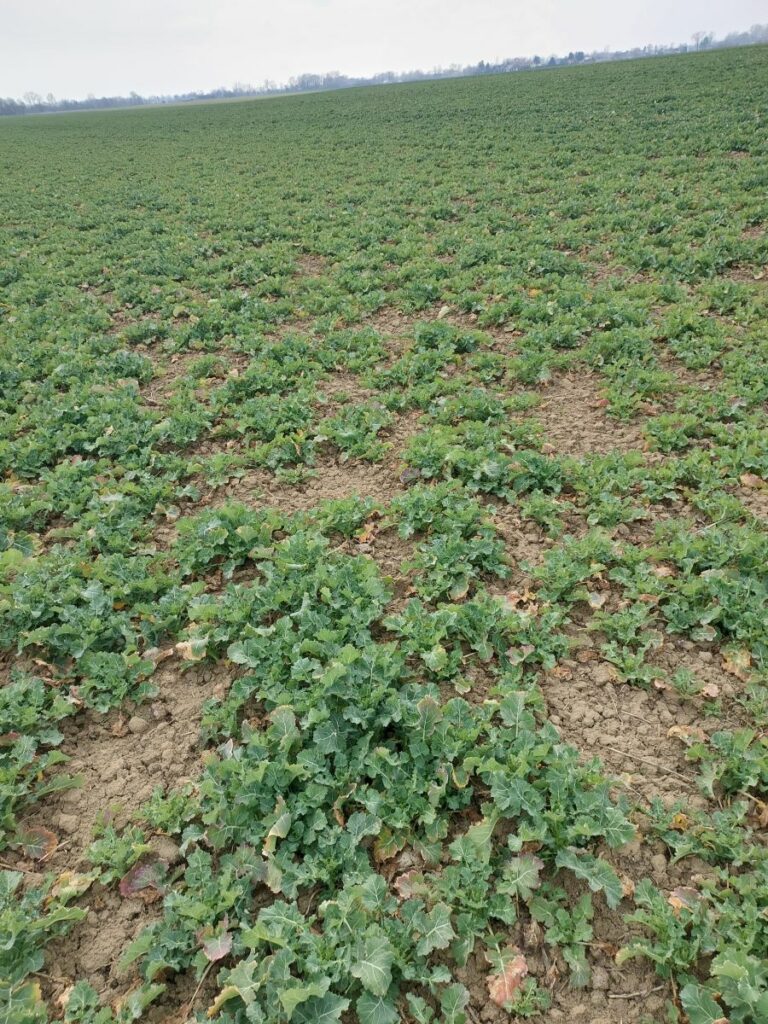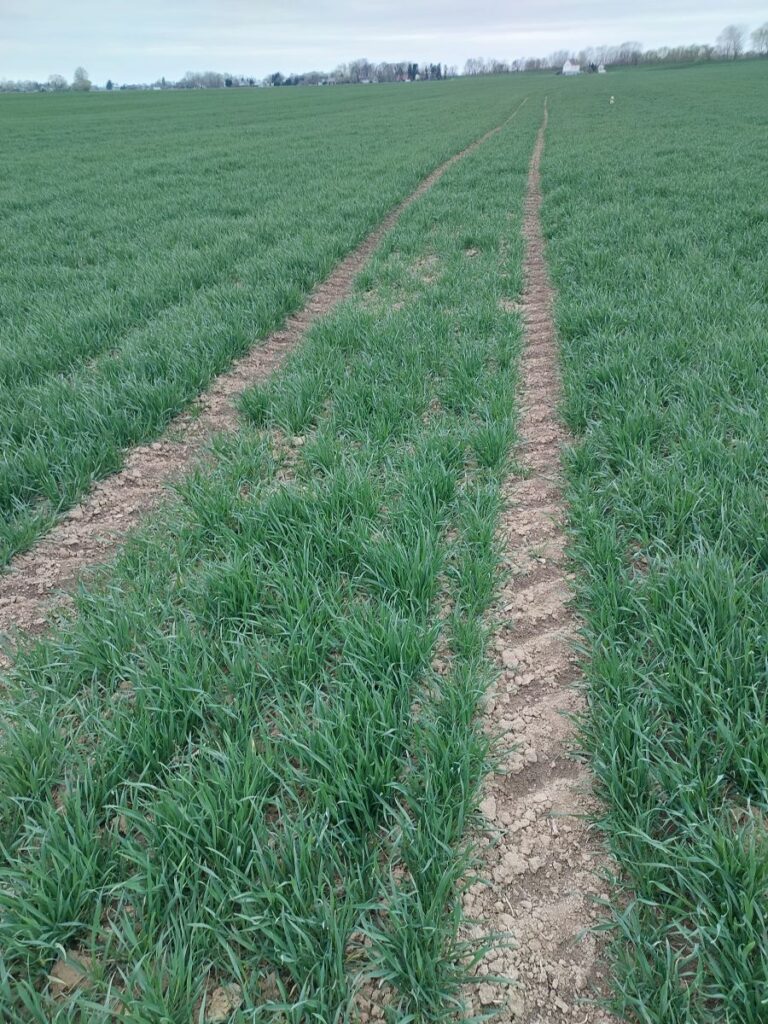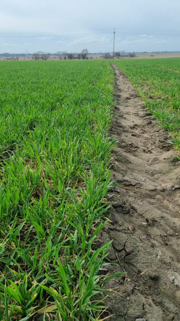 RZD Baborówko. Suma opadów od początku roku do końca marca wyniosła 37 mm z czego w marcu tylko 3,5 mm. Były to wartości znacznie niższe niż w pierwszym kwartale roku 2025. Przez znaczną część miesiąca występowały również przymrozki. W marcu zastosowano pierwszą dawkę azotu na pszenicę ozimą oraz drugą dawkę na rzepak ozimy. W związku z pojawieniem się dużej ilości chowaczy w uprawach rzepaku wykonano zabieg insektycydowy. Na polach przeznaczonych do siewu kukurydzy wysiano nawóz PK oraz rozpoczęto przedsiewną uprawę gleby przy użyciu brony talerzowej. W trzeciej dekadzie marca rozpoczęto pomiary wilgotności gleby w ramach „Monitoringu suszy”. W obrębie jednego z pól pszenicy ozimej zostały dodatkowo zainstalowane 3 łanowe stacje pogodowe Metos 5. Cześć pszenicy ozimej zasianej po zbiorze kukurydzy na ziarno powschodziła jeszcze jesienią a pozostała dopiero na przełomie lutego i marca. Pod koniec marca rośliny rozpoczęły fazę krzewienia. Opóźnienia te wynikały z późnego terminu siewu, spowodowanego przesuniętym w czasie zbiorem kukurydzy, a także z wcześniejszego zahamowania wegetacji wskutek niskich temperatur. W okresie zimowym przez większość dni nie występowała trwała pokrywa śnieżna lub utrzymywała się ona jedynie krótkotrwale. Z tego powodu grunt przemarzł na kilkadziesiąt cm w głąb gleby.