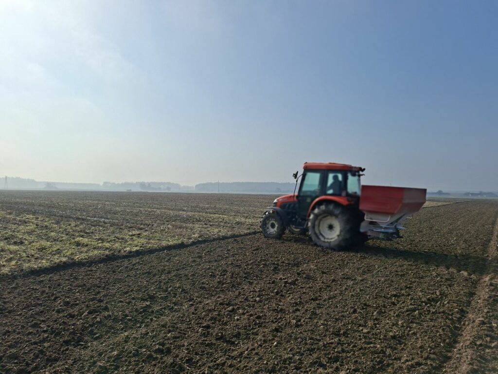 RZD Jastków. W marcu zboża ozime uprawiane w Spółce – pszenica odmiany „Revolver” oraz pszenżyto odmiany „Belcanto” – otrzymały pierwszą startową dawkę nawozów azotowych. Korzystny stan gleby oraz sprzyjające warunki termiczne wpłynęły pozytywnie na proces krzewienia roślin, co przełożyło się na wyraźną poprawę kondycji upraw. Na plantacjach chmielu prowadzono prace związane z remontem i przygotowaniem konstrukcji nośnych do zawieszania przewodników roślin. Równocześnie rozpoczęto pierwsze zabiegi agrotechniczne, mające na celu wyrównanie powierzchni gleby, ograniczenie parowania wody oraz odorywanie rzędów roślin, co sprzyja poprawie warunków wzrostu i rozwoju plantacji.