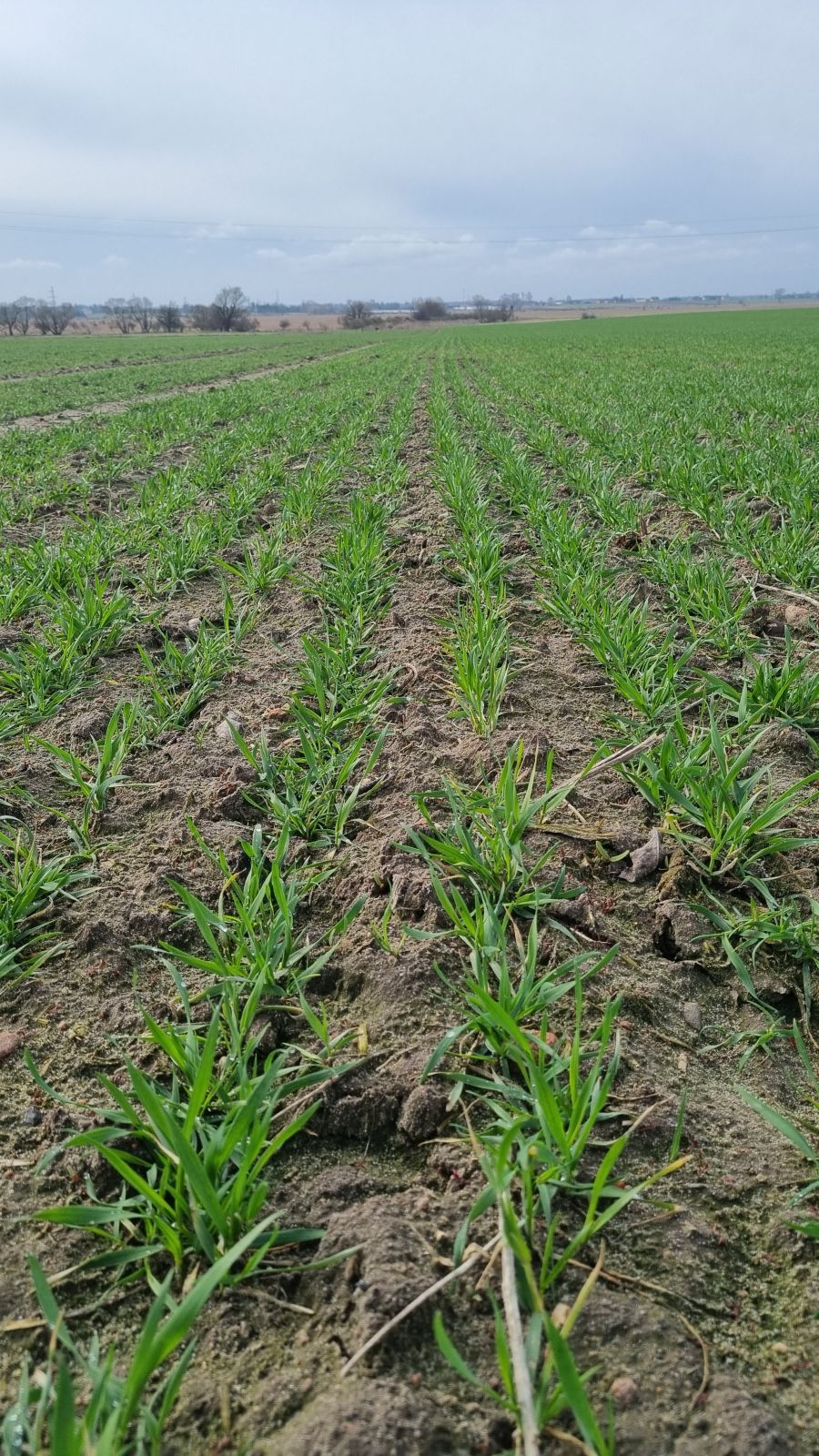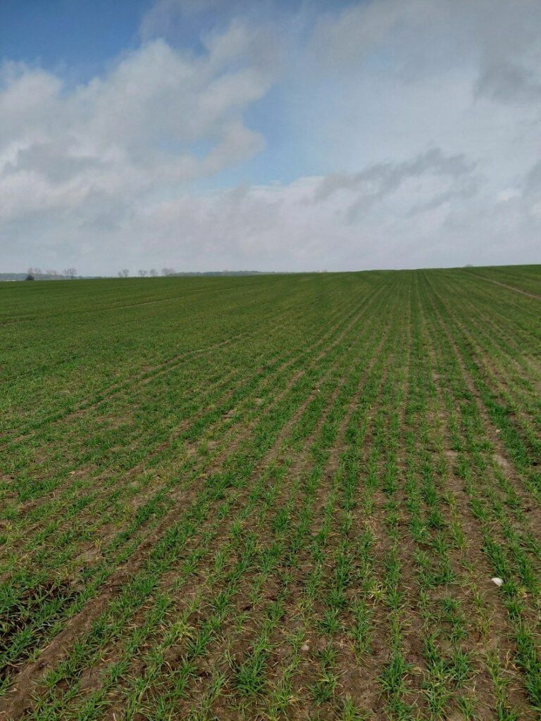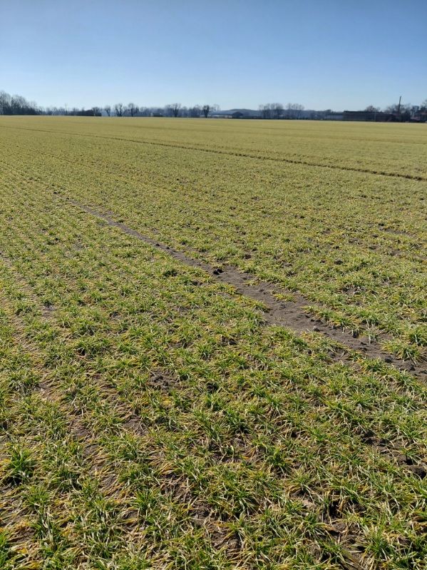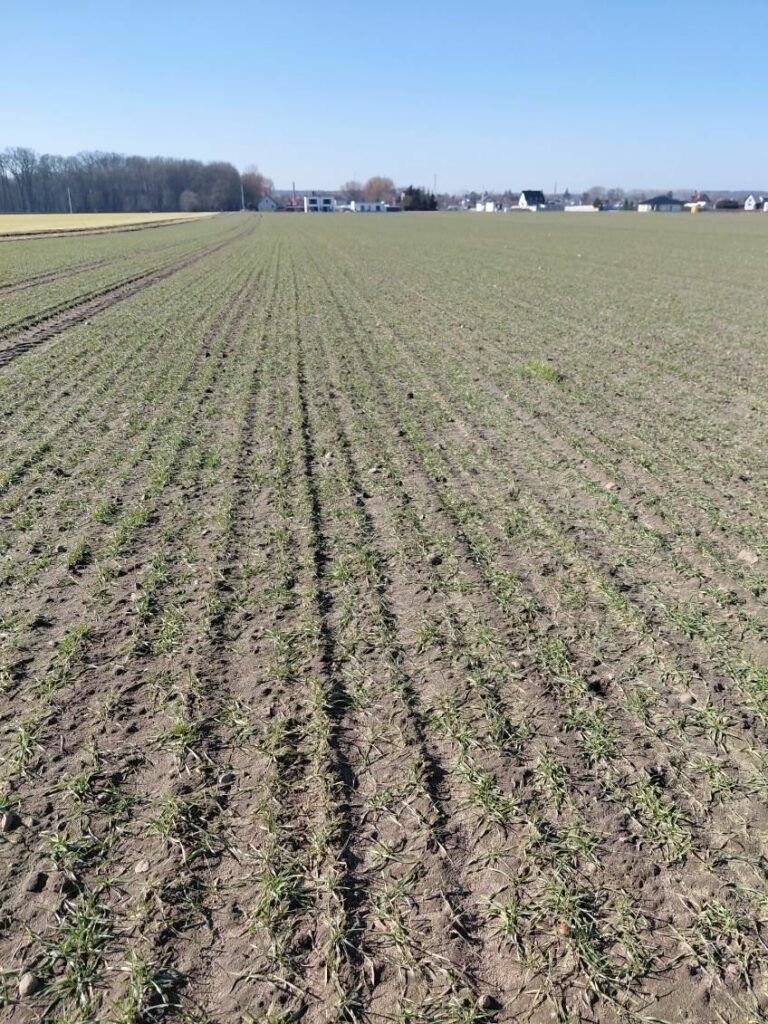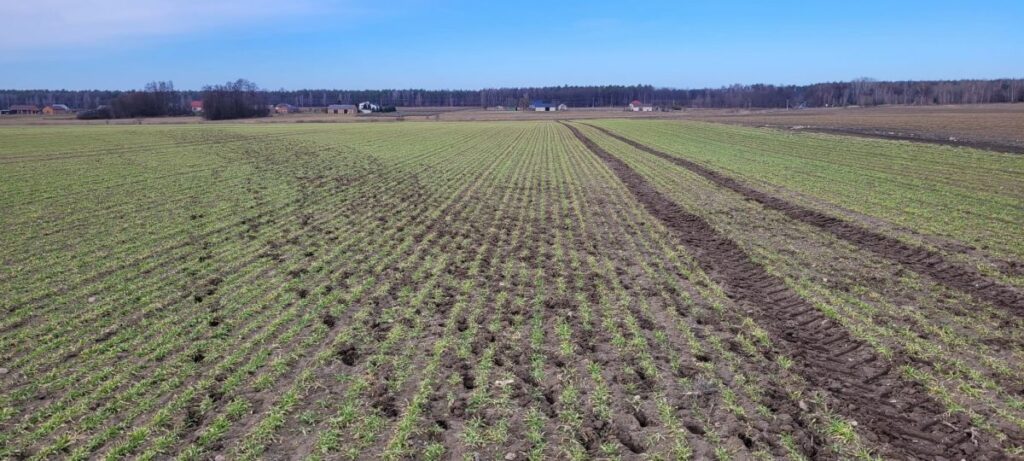 RZD Wierzbno. Stan upraw zbóż ozimych w gospodarstwie oceniono jako przeciętny. Na obecną kondycję roślin w największym stopniu wpływają niskie sumy opadów atmosferycznych — od stycznia odnotowano zaledwie 27 l/m² — oraz występujące nocne przymrozki, sięgające -4°C.Wschody owsa oceniane są jako dobre, jednak w przypadku utrzymania się deficytu opadów w ciągu najbliższych dwóch tygodni istnieje ryzyko pojawienia się objawów suszy także w tej uprawie. W marcu zastosowano dwie dawki nawożenia azotowego w uprawach ozimych. W najbliższym czasie planowane jest wykonanie zabiegu herbicydowego na powierzchni 22 ha pszenżyta. W pozostałych uprawach ozimych zabieg ten został wykonany jesienią.
