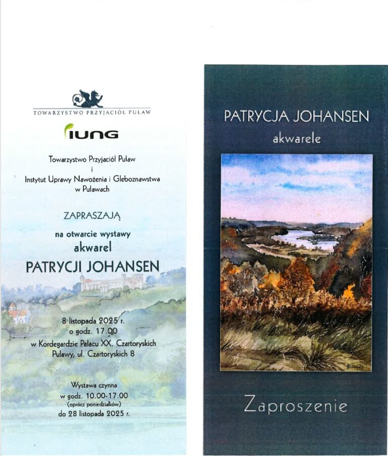 Jako współorganizator zapraszamy od 8 do 28 listopada 2025 r. na wystawę akwarel w Kordegardzie Pałacu Czartoryskich w Puławach.