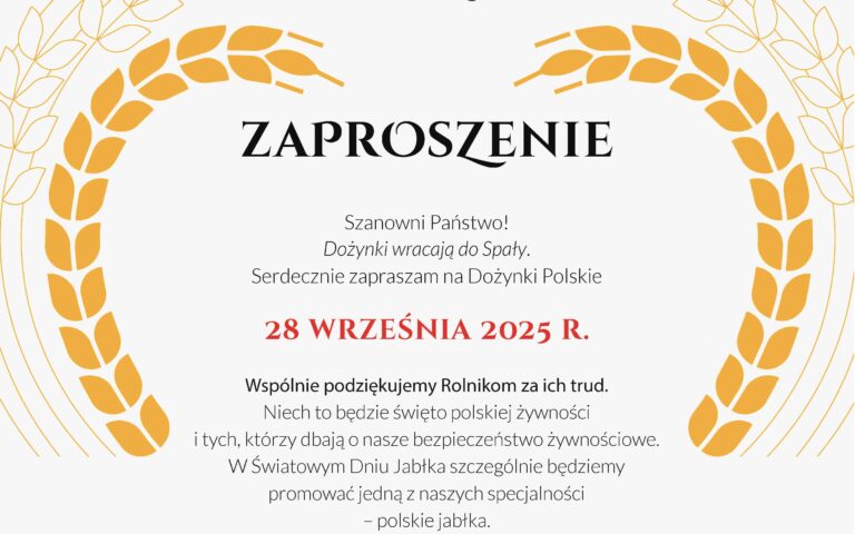 Dożynki Polskie powracają do Spały – już 28 września 2025 r. będziemy wspólnie dziękować Rolnikom za ich trud i świętować polską żywność. W Światowym Dniu Jabłka szczególną uwagę poświęcimy naszej dumie narodowej – polskim jabłkom.