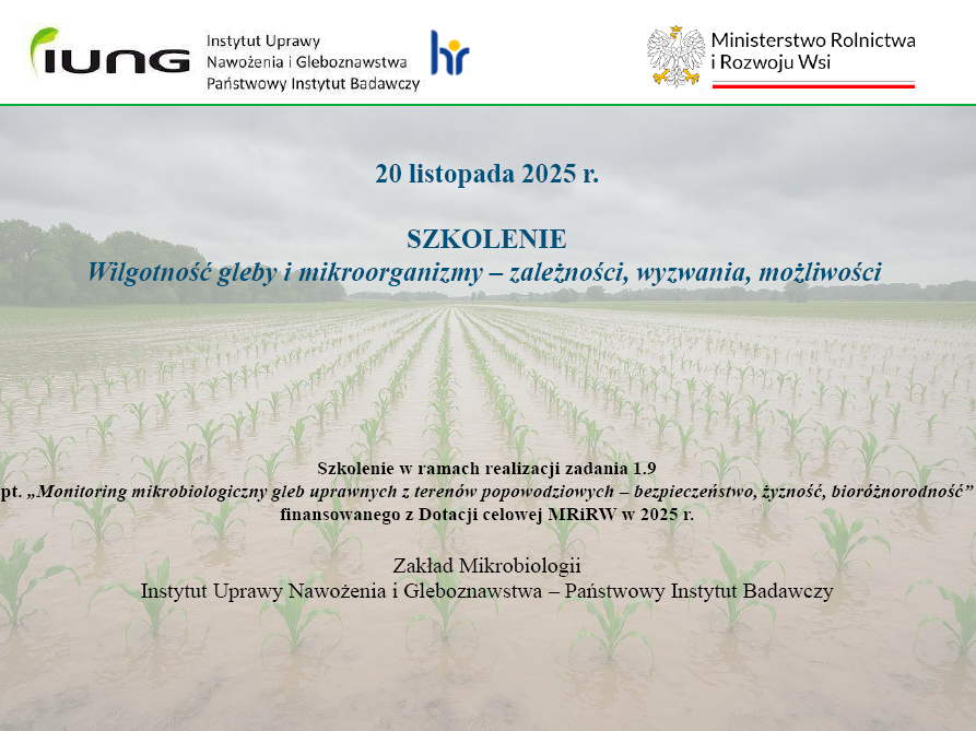 Zapraszamy wszystkich zainteresowanych do uczestnictwa w szkoleniu finansowany ze środków dotacji celowej Ministerstwa Rolnictwa i Rozwoju Wsi – zadanie 1.9 „Monitoring mikrobiologiczny gleb uprawnych z