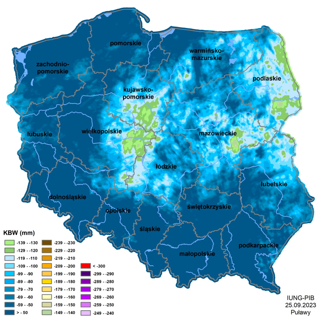 Klimatyczny Bilans Wodny od 21 lipca do 20 września 2023