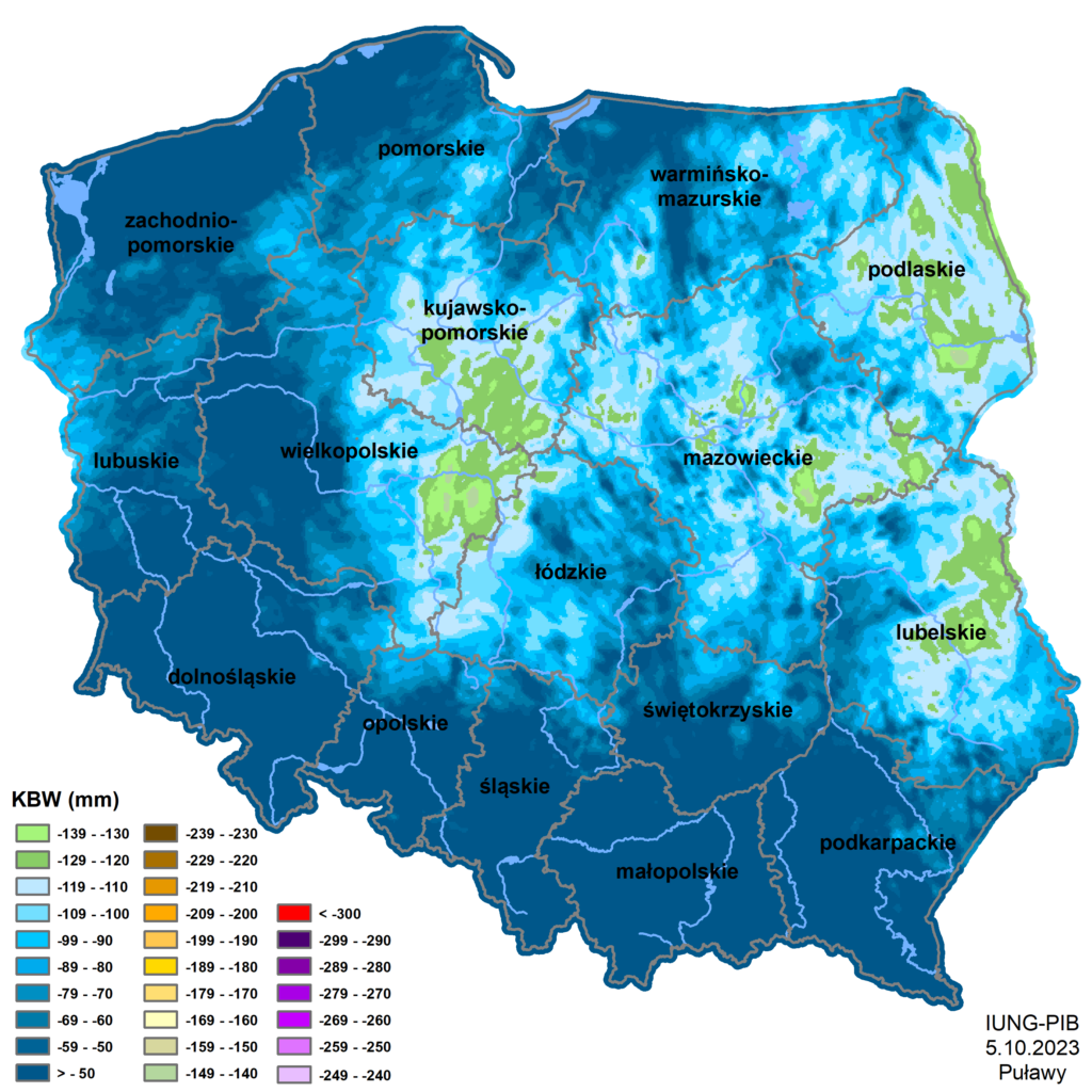 Klimatyczny Bilans Wodny od 1 sierpnia do 30 września 2023